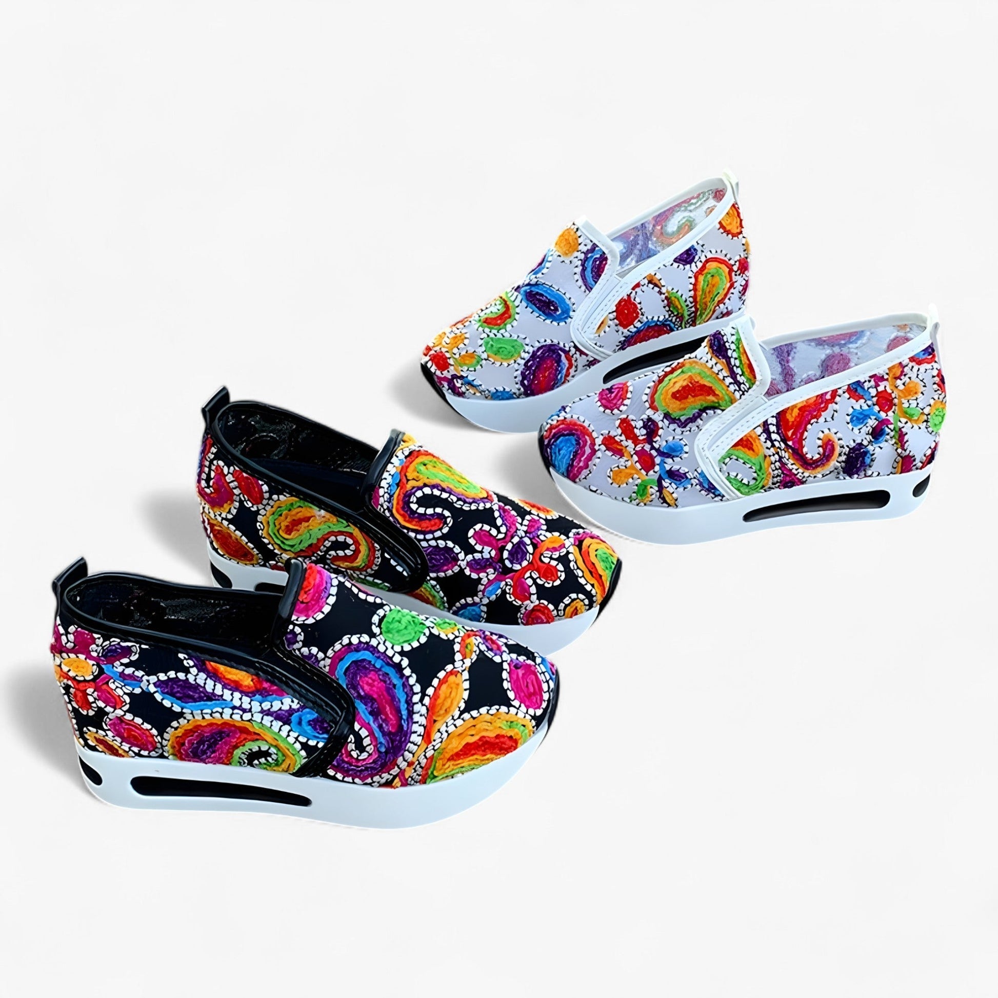Värikkäät kukkakirjailut tuovat eloa asuusi, ja kätevän slip-on-mallin ansiosta olet valmis lähtöön sekunneissa. Helposti yhdisteltävät ja helposti puettavat – näistä tulee takuulla uudet suosikkilenkkarisi.